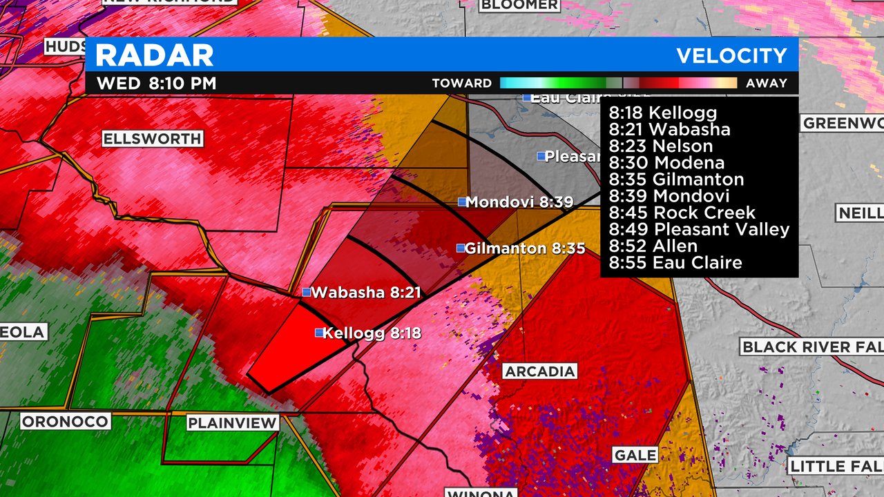 Meteorologist Lisa Meadows says there are some isolated storms throughout southern Minnesota Sunday evening, with temperatures dropping to the mid-60s. Overnight, a line of showers and storms will move into the state from the west, but the system will lose energy as it passes through.
