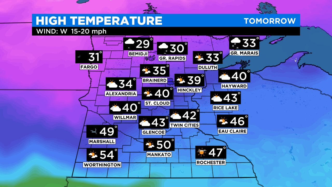 High temperatures in the metro will reach 20 degrees on Saturday and 42 degrees on Sunday – which could turn out to be the warmest day of February. Southern Minnesota could reach the 50s.