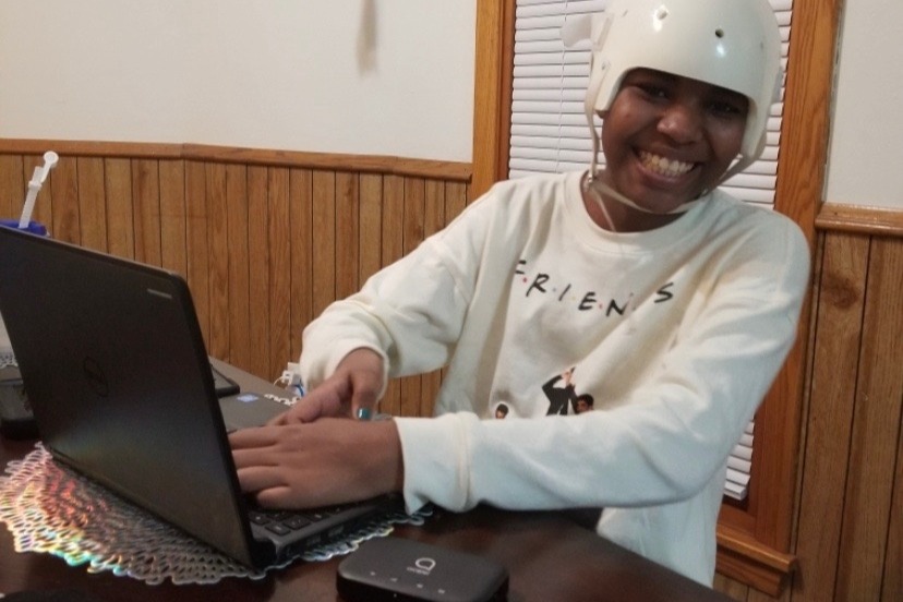 “This part of my skull is missing,” Makayla said as she pointed to the side of her head. “They had to take it out because it was too damaged, and I haven’t got the surgery to get a new one yet so I have to wear this.”